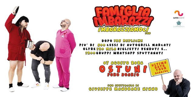 | 7 AGO | MANDRAKE CHIUDE IL TOUR A OSTUNI: ULTIMA TAPPA PER “FAMIGLIA IMBARAZZI” |