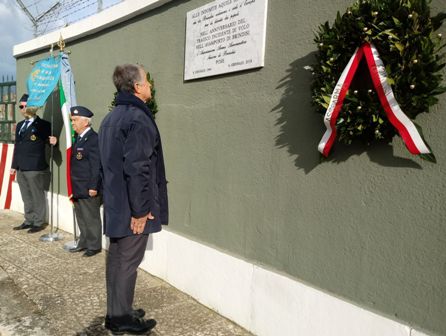 Alla presenza di soci e simpatizzanti del Sodalizio, dopo la benedizione, il Generale di Brigata Aerea, Vitantonio Laterza hadeposto una corona d’alloro sul muro esterno del Distaccamento Aeroportuale di Brindisi dove, il 28 marzo dello scorso anno, la Sezione cittadina pose una lapide,per ricordare il tragico incidente di volo. Una corona d’alloro è stata deposta inoltre del Consiglio Periferico Provinciale di Assoarma.