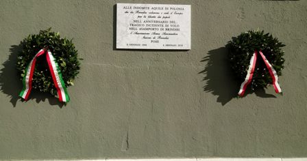 Sulla lapide marmorea inaugurata è riportato testualmente: “Alle indomite aquile di Polonia che da Brindisi volarono i cieli d’Europa per la libertà dei popoli nell’anniversario del tragico incidente nell’avamporto di Brindisi. L’AAA sezione di Brindisi pose”.