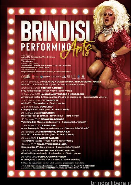 Il BRINDISI PERFORMING ARTS è un festival internazionale di arti performative che vuole portare nella città di Brindisi innovazione artistica attraverso l’arte performativa.