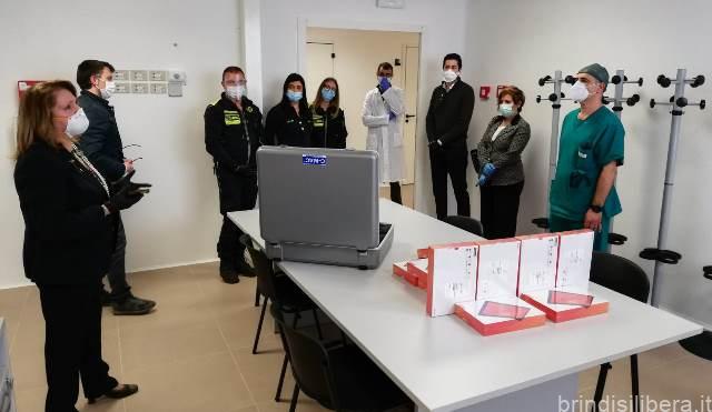 Un broncoscopio completo di monitor e 15 tablet sono stati consegnati oggi nel nuovo Reparto di Terapia intensiva del Perrino di Brindisi. Cinque tablet sono stati destinati alla Rianimazione e due ciascuno per il reparto di Medicina interna e i quattro Centri post Covid di Ceglie Messapica, Cisternino, Fasano e Mesagne.