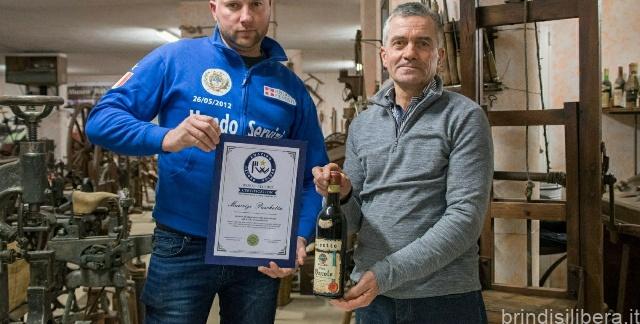 A conquistare il titolo è stato l’atleta saluzzese Maurizio Paschetta detto The Natural Boy, detentore di ben otto record mondiali agricoli. Il vino è un Barolo prodotto nella città di Serralunga D’Alba nel 1961. Attualmente é conservato ed esposto nel museo agricolo “Robe Veje” di proprietà di Luigi Varrone nella città di Fontanelle Boves. Viene esposto in tale struttura perché Maurizio Paschetta, dopo aver conquistato il titolo mondiale, di sua spontanea volontà, ha voluto donare a titolo gratuito ed in modo definitivo la bottiglia di vino a Luigi Varrone, con tanto di atto di donazione, per formalizzare il passaggio di proprietà. Il recordman dichiara: Luigi oltre ad essere un mio migliore amico e senza dubbio la persona più giusta e qualificata per conservare al meglio la bottiglia. Inoltre voglio che la bottiglia possa essere ammirata nel suo museo perché, tra i tantissimi musei agricoli che ci sono in Italia, il suo museo è assolutamente il numero uno da visitare perché oltre la quantità e la qualità dei materiali, espone attrezzi agricoli manuali d’epoca tutti funzionanti.