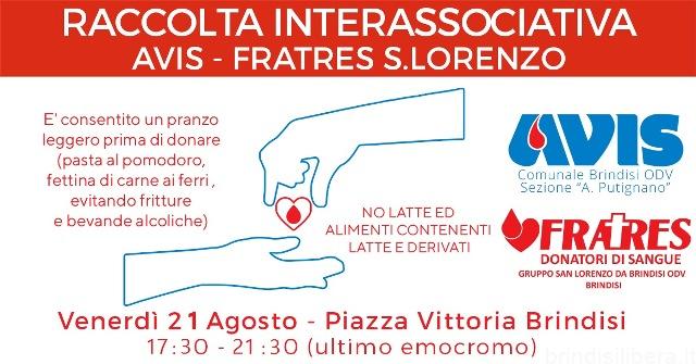 BRINDISI.Avis – Fratres : raccolta sangue VENERDI’ 21 AGOSTO