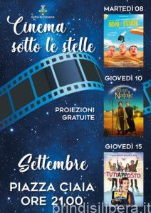 Con l’arrivo di settembre e a ridosso della stagione autunnale, cresce la voglia di dedicarsi alla visione di qualche bel film, magari in compagnia e senza chiudersi tra le quattro mura domestiche. Ed è per questo che l’amministrazione pubblica ha programmato un cartellone di 3 eventi di “Cinema sotto le Stelle” in piazza Ciaia, proiezioni completamente gratuite con posti a sedere che ovviamente rispetteranno tutte le prescrizioni di legge per il distanziamento sociale atte a limitare la diffusione del virus Covid-19.