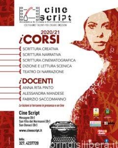 Per questa ragione, anche in questo momento difficile, Cine Script propone a novembre i suoi corsi rivolti ai creativi di ogni età, in modalità on line oppure in presenza, nel rispetto delle normative anti-covid, a Mesagne presso Cabiria in piazza Orsini del Balzo 9 e a San Donaci, in via Mesagne, nelle officine creative sede di Donakè.
