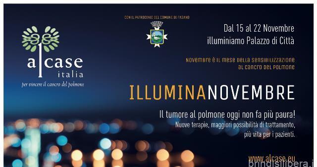 Giovedì 12 novembre, alle ore 17:00, nella Sala di Rappresentanza di Palazzo di Città si svolgerà la conferenza stampa di presentazione della manifestazione ILLUMINANOVEMBRE, in occasione delle mense della sensibilizzazione al cancro ai polmoni.