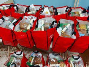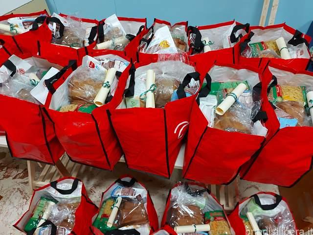 legumi, biscotti, latte, ecc.. Inoltre nel sacchetto abbiamo pensato di aggiungere anche un panettone come simbolo di speranza e di augurio per le prossime festività Natalizie.