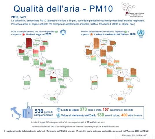 Il Pm10 è l’insieme di particelle con diametro aerodinamico inferiore a 10 μm (10-6 m). Le sue ridotte dimensioni gli permettono di penetrare nell’apparato respiratorio. Vari studi epidemiologici hanno evidenziato correlazioni tra le concentrazioni del Pm10 e l’incremento di mortalità e di ricoveri per malattie cardio-polmonari.
