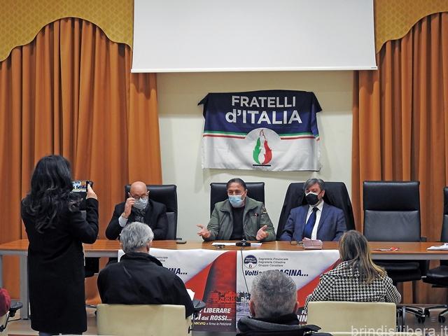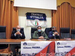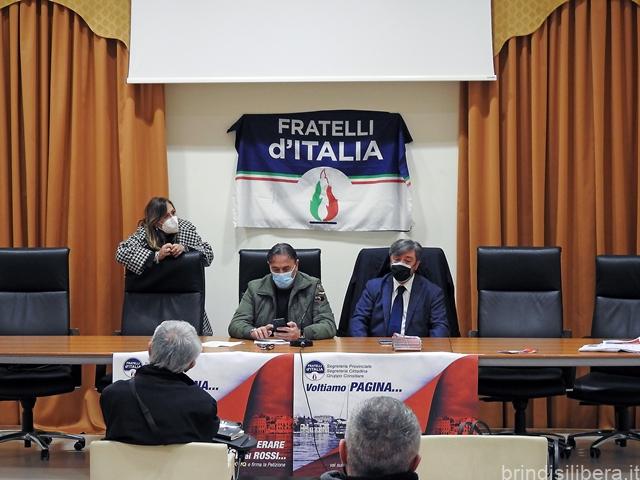 Una conferenza stampa per ribadire, se ancora ce ne fosse bisogno, il totale dissenso nei riguardi dell’ Amministrazione Comunale brindisina di Centro Sinistra guidata da Riccardo Rossi, le iniziative già messe in campo per informare e coinvolgere i cittadini in tal senso, l’ importanza del partito all’ interno della coalizione di opposizione di Centro Destra, ma, allo stesso tempo, mantenendo una certa autonomia , critica e decisionale .