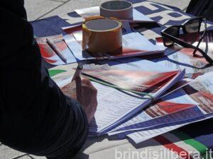 Una “ due giorni“ di raccolta firme, sabato e domenica nel centro brindisino, per lanciare un “ messaggio di sfiducia“ verso l’ Amministrazione Comunale guidata da Riccardo Rossi. Un’ iniziativa organizzata da Fratelli d’ Italia Brindisi, anche attraverso una piattaforma on line, già annunciata alcuni giorni fa nel corso di una conferenza stampa .