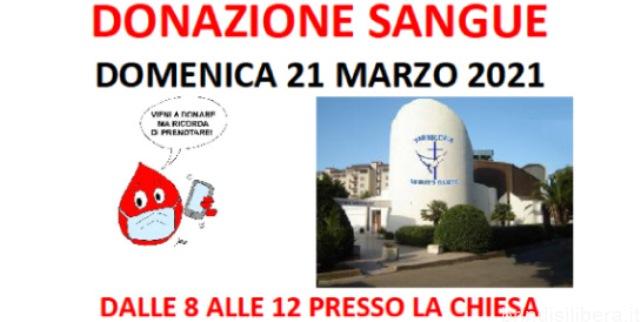 Questa volta si ritorna presso Parrocchia Spirito Santo, nel quartiere Sant’Angelo di Brindisi e la raccolta avverrà, domenica 21 marzo, dalle 8 alle 12 (effettuazione ultimo emocromo).