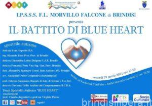 Venerdì prossimo 23 aprile alle ore 17,30 l’IPSSS Morvillo Falcone di Brindisi – sportello autismo, presenta la conferenza dal titolo “Il battito di Blue Heart”, che verrà svolta a porte chiuse senza pubblico e mandato in onda su Youtube, Facebook e Radio Morvillo martedì 27 aprile alle ore 18,30.