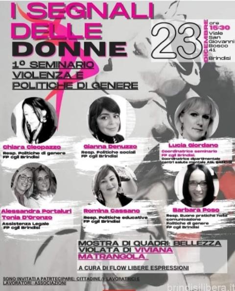 La Cgil-Fp Br. vuole essere a fianco, ascoltare e sostenere la voce delle donne vittime di violenza, in tutte le forme in cui si esprime, proponiamo un percorso “I SEGNALI DELLE DONNE”, con l’obiettivo di chiedere alle Istituzioni, alle aziende, di intervenire con misure più stringenti perché se la donna è considerata come soggetto possedibile non come soggetto di cittadinanza, il nostro territorio ha un gravissimo vuoto di democrazia che non possiamo considerare completamente sanato.