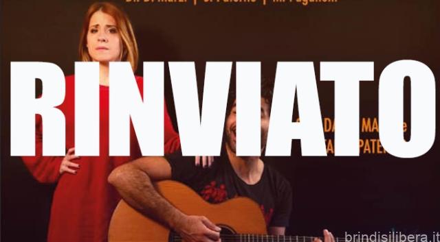 Rinviato a data da destinarsi la rappresentazione teatrale «DUE», organizzata dall’Amministrazione comunale in occasione del cartellone eventi Amo a Fasano, che sarebbe dovuta andare in scena domani, sabato 26 febbraio alle ore 21:00 al Teatro Sociale di Fasano.