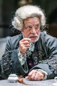 «Il luogo della scena, che non cambia mai, merita qualche attenzione: è una piazzetta nella città di Venezia. Di fronte vi sono tre botteghe: quella in mezzo è un caffè, quella a destra è occupata da un parrucchiere e l’altra a sinistra da un biscazziere. Da una parte, vi è fra due calli, una casetta, abitata da una ballerina, dall’altra una locanda». È lo stesso autore a descriverci nei Memoires la scena con perfetta unità di luogo, in cui si svolge La bottega del caffè: una commedia che da subito si annuncia corale, interessata a diverse figure e vicende, incentrata su un microcosmo attraverso cui Goldoni tratteggia uno sfaccettato affresco sociale e umano. Quante vanità, speranze, delusioni scorrono dunque davanti agli occhi di Ridolfo, il saggio proprietario della caffetteria e quante vicende arrivano all’orecchio malizioso di Don Marzio, nobile napoletano che sorseggiando il caffè osserva questo piccolo mondo e si diverte a manipolarne i destini. Al personaggio – che in questa nuova edizione firmata da Paolo Valerio sarà interpretato da Michele Placido, un grande e carismatico protagonista del mondo dello spettacolo italiano – Goldoni assicura una decisa e intrigante centralità.