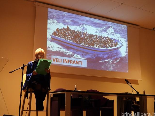Un’ iniziativa che ha visto l’ intervento introduttivo di Aloisia Lamberti, e interventi – relazioni di livello e qualità , l’ avv. Maria Luana Garofoli ( Operatrice legale imbarcata su navi in attività di soccorso), Fabrizio Maltinti ( Esperto di Geopolitica e da sempre ben attento a studi, analisi, riflessioni, sulle dinamiche politiche, economiche e sociali internazionali), Sabina Bombacigno ( Vice Presidente Associazione Migrantes Brindisi).