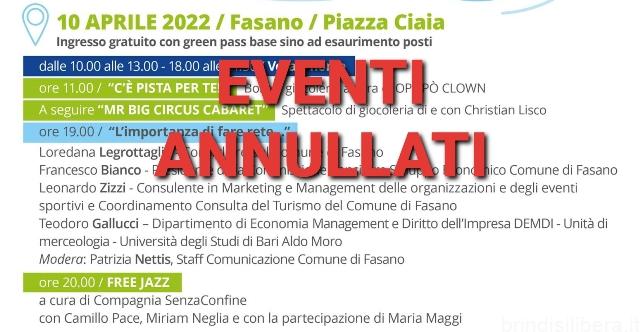 Annullata a causa del vento forte la quarta giornata di eventi dedicati alla scelta del nome per la destinazione turistica della città di Fasano.