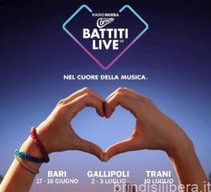 Queste le date ufficiali in diretta su Radio Norba e Tele Norba: venerdì 17 e sabato 18 giugno da Bari, sabato 2 e domenica 3 luglio da Gallipoli, domenica 10 luglio il gran finale da Trani. “E’ arrivato il momento di riprendere il nostro cammino”, prosegue Montrone, “e lo facciamo con orgoglio sempre dalla Puglia, la regioni dove sono nate Radio Norba e Battiti Live, la regione dove tutti vorrebbero essere d’estate. Potranno venirci a trovare nelle piazze più belle, ma se non potranno venirci fisicamente, porteremo noi l’Italia nelle piazze di Puglia attraverso la tv, con Italia 1, che anche quest’anno accenderà la musica dell’estate italiana con sei puntate tra luglio ed agosto”.