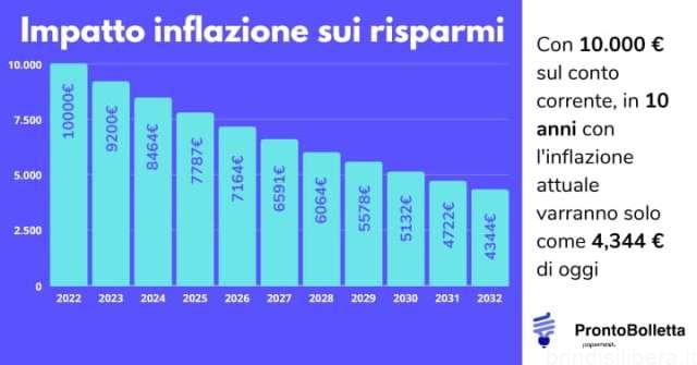 Ipotizzando, dopo anni in una situazione di inflazione, il latte iniziasse a costare 2 euro, i medesimi 100 euro risparmiati, permetteranno di comprare solo 50 litri! E questo potrebbe essere ancora più complesso per il prezzo kWh dell’energia elettrica per la situazione in Ucraina.