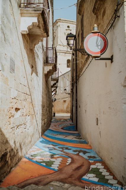 La lingua d’asfalto di via Casalino, vera e propria cicatrice che rompe l’armonia delle basole del centro storico, è diventata grazie all’artista Mino di Summa un’opera d’arte a cielo aperto che racconta Francavilla Fontana.