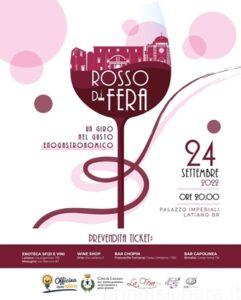 Nel calendario degli eventi, organizzati dal Comune di Latiano, in occasione dell’amatissima Fera di Ottobre , ritorna il 24 Settembre dalle ore 20:00 nel palazzo Imperiali, la quarta edizione dell’evento “Rosso di Fera”.