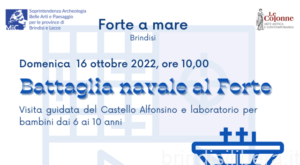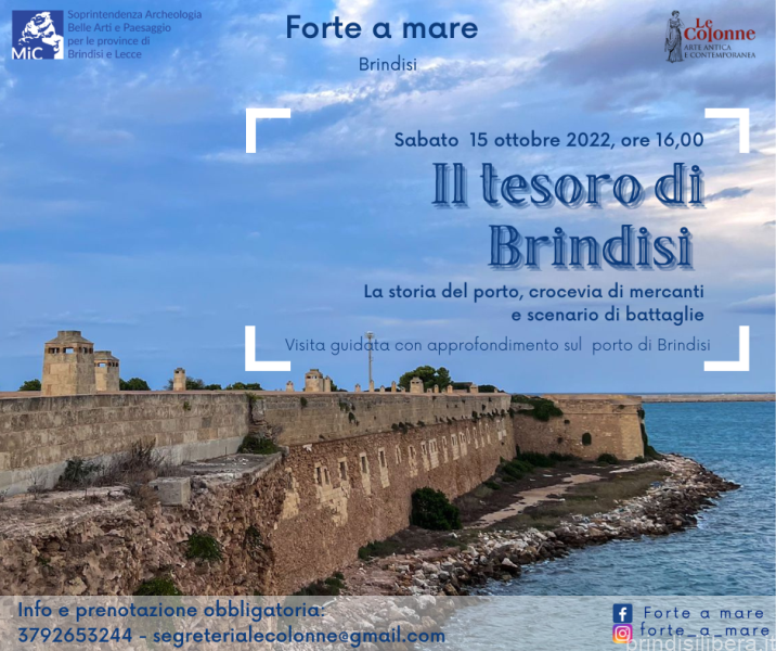 Sabato 15 e domenica 16 ottobre, presso il Castello Alfonsino, il porto di Brindisi sarà protagonista di due appuntamenti dedicati ad adulti e bambini, promossi dalla Aps Le Colonne, sotto l’egida della Soprintendenza Archeologia Belle Arti e Paesaggio di Brindisi e Lecce. Si inizia sabato 15 ottobre, alle ore 16,00, con la visita guidata tematica “Il tesoro di Brindisi.