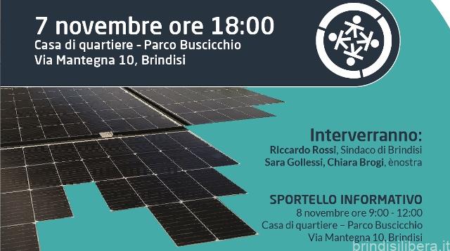 A seguire dalle ore 18 presso la Casa di Quartiere – Parco Buscicchio di via Mantegna si svolgerà l’evento di disseminazione dei risultati e la campagna informativa sul tema delle comunità energetiche rinnovabili, in collaborazione con ènostra (Fornitore cooperativo nazionale di energia elettrica rinnovabile, sostenibile ed etica), per conoscere i benefici di chi aderisce alla comunità energetica rinnovabile.