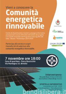 Lunedì 7 novembre alle ore 16.30 presso la scuola primaria dell’Istituto Comprensivo Sant’Elia-Commenda di via Mantegna, ci sarà l’evento di inaugurazione dell’impianto fotovoltaico, previsto e realizzato grazie al progetto Co-Clean, finanziato dal Programma Interreg IPA CBC Italia-Albania-Montenegro 2014/2020, di cui il Comune di Brindisi è capofila.
