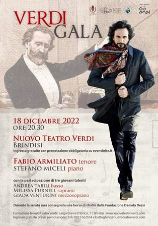 Una serata nel segno del grande maestro di Busseto e della sua straordinaria musica, che risuona a Brindisi come nei più grandi teatri d’Italia e del mondo. Ma “Verdi Gala” non è soltanto un viaggio nel magico universo verdiano, ma anche un incontro con il teatro e con il piacere di condividere uno spazio della città, dopo un lungo periodo che ha privato la comunità delle voci della scena.