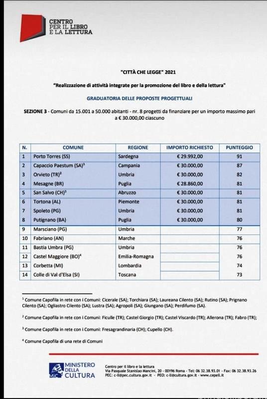 La buona notizia a poche settimane dalla riconferma del titolo di ‘Città che legge”