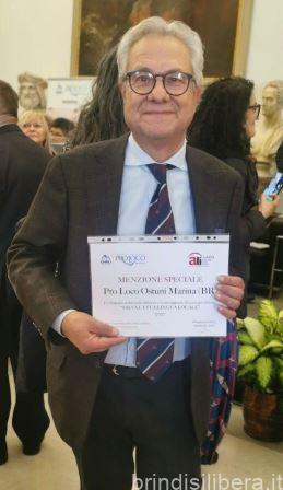 Una menzione speciale per la diffusione del premio è toccata alla Pro Loco Ostuni Marina insignita dal Presidente delle Pro Loco d’Italia Nino La Spina con una attestazione di merito per aver prodotto e pubblicato il libro con l Unitre di Ostuni dal Titolo “ la lingua va…….dove la porta il cuore.