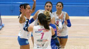 Le padrone di casa sentono addosso la pressione delle avversarie e, forse per il nervosismo, “regalano” qualche punto alle rivali con falli ed errori non forzati (11-16). Come nel primo set, Coach Quarta effettua qualche rotazione inserendo Maggio per De Toma e la giovane Fiore per Andreula. Cambia la formazione ma non la sostanza con le brindisine che, dopo aver spento l’entusiasmo delle avversarie, conquistano il set per 17-25.