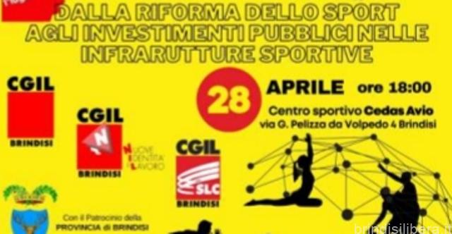 Il 6 Aprile 2023 si celebra il decimo anniversario della Giornata Internazionale dello Sport. Per questa ricorrenza la Camera del Lavoro, NIdiL/CGIL e SLC/CGIL di Brindisi, con il Patrocinio della locale Amministrazione Provinciale organizzano e promuovono un evento in presenza, che si terrà il 28 Aprile 2023, presso il centro sportivo CEDAS AVIO sito in Brindisi alla via Pelizza da Volpedo, con inizio dalle ore 18.00. L’ evento avente per tema “sport e inclusione sociale” vedrà la partecipazione del mondo dello sport brindisino e degli atleti. In tale occasione sarà illustrata la nuova riforma dello sport che andrà in vigore dal 1 luglio p.v. e che vedrà coinvolti tutti i lavoratori dello sport incardinati e si discuterà di investimenti pubblici da recepire per le infrastrutture sportive a vantaggio dei lavoratori dello sport, dei giovani sportivi, considerando lo sport grande fulcro di valore collettivo e di inclusione sociale. Cgil, NIdiL e SLC di Brindisi ne danno informazione e pubblicità e invitano istituzioni, organizzazioni e associazioni sportive e la cittadinanza di Brindisi e provincia a partecipare.