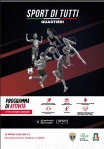 La presentazione del proge0o sarà a cura di Andrea Contaldi con gli interven: del Sindaco di Brindisi, Ing. Riccardo Rossi; del Coordinatore regionale di Sport e Salute S.p.a. per la Puglia Francesco Toscano; del Presidente Regionale Federazione Italiana Rugby, DoL. Gaetano Nigri; del parroco Chiesa “Cristo Salvatore” di Brindisi, Don Massimo Mengasi; del Dirigente Scolas:co dell’I.C. “Sant’Elia-Commenda” Prof. Lucia Portolano e di altre autorità is:tuzionali, spor:ve e scolas:che.