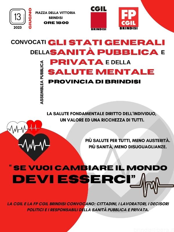 CONVOCATI GLI STATI GENERALI DELLA SANITÀ PUBBLICA E PRIVATA E DELLA SALUTE MENTALE DELLA PROVINCIA DI BRINDISI IN ASSEMBLEA PUBBLICA A BRINDISI IN PIAZZA DELLA VITTORIA IL 13. 06. 2023 ALLE ORE 18:00