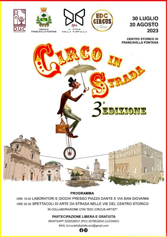 Domenica 30 luglio dalle 18.30 il centro storico di Francavilla Fontana si trasformerà in un grande palcoscenico per il primo appuntamento della terza edizione di Circo in Strada.