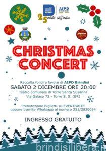 – Successivamente sarà la volta del Natale con un concerto di apertura della stagione delle festività che si terrà il 2 dicembre alle ore 20.00 presso il Teatro Comunale di Torre Santa Susanna. Il concerto, realizzato dal Comune di Torre Santa Susanna, in collaborazione con “Jingle Band Christmas Tribute”, offrirà una serie di rivisitazioni in chiave moderna dei più celebri brani di Natale e vedrà la partecipazione degli operatori e dei ragazzi di AIPD Brindisi. Durante il concerto, ad ingresso gratuito, sarà effettuata una raccolta fondi a favore dei progetti di AIPD. Per prenotazioni è possibile inviare un messaggio whatsapp al numero 351 383 0034, oppure andare su Eventbrite al seguente link: