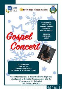 – La stagione si concluderà con ulteriori due concerti, sempre destinati a raccogliere fondi a favore di Aipd Brindisi, stavolta in stile GOSPEL, nati dalla collaborazione ormai pluriennale con l’Associazione di Promozione Sociale Brindisi Tabernacle: il 9 Dicembre alle ore 20.30 presso il Teatro Impero ed il 21 Dicembre, sempre alle ore 20.30, presso il Teatro Comunale di Torre Santa Susanna. AIPD Brindisi, ormai da tempo partner di Brindisi Tabernacle, con la quale collabora nelle raccolte alimentari per le persone in condizione di disagio economico, avrà il piacere di presenziare con i ragazzi ad entrambe queste occasioni per augurare a tutti “Gioiose Festività”. A breve ulteriori informazioni sulle prenotazioni di questi ultimi due eventi.