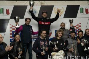 Avrio St09, la stessa vettura con cui il lucano Innocenzo Vizzuso ha chiuso in sesta posizione. Ottimo settimo posto per l’Under 23 di Monopoli Francesco, alla sua seconda gara a bordo della Radical SR4 dei fratelli D’Amico. I minibolidi kart cross Gruppo E2 SS entrano in top ten con Lorenzo Mansueto, dell’Apulia Corse, ottavo, e Giovanni Liuzzi, decimo. Pierpaolo Potenza (scuderia Valle d’Itria) è nono su Osella PA21. Nei restanti gruppi in gara sul circuito Pista Fanelli di Torricella, successo in Gruppo E1 Italia per Vito Pastore, tredicesimo assoluto, che, al volante di una Renault 5 GT Turbo, taglia il traguardo dei quattro giri di pista davanti a tutti in tutte e tre le gare disputate. Lo imitano, tra le bicilindriche, Oronzo Montanaro su Fiat 500, tra le Gruppo Racing Start, Natale Ruggiero su Peugeot 106 e, su vettura gemella, solitario in