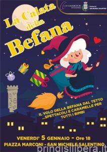 Il programma “Natale di Tutti” a San Michele Salentino si conferma ricco di eventi. Dopo il fantastico Capodanno con Ciccio Riccio, l’atmosfera festosa continua con uno spettacolo straordinario: l’arrivo speciale della Befana per tutti i nostri piccoli amici. Appuntamento alle ore 17.30 in piazza Marconi. Venerdì 5 gennaio, grazie alla disponibilità del parroco don Tony Falcone, la Befana scenderà dalla Torre del Campanile della chiesa di San Michele