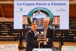 Il trofeo è stato esposto al Palazzetto dello Sport di Vigna Marina, accompagnato dal Team manager della Nazionale italiana di Tennis e Direttore della Scuola Nazionale Maestri Istituto di formazione “Roberto Lombardi” Michelangelo Dell’Edera, che si è concesso a una divertente e interessante intervista con Mimmo Capozzi, responsabile dell’Ufficio Comunicazione del Comune di Fasano.