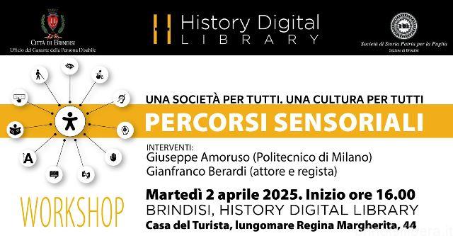 La History Digital Library, in collaborazione con l’Ufficio del Garante per i Diritti della Persona Disabile del Comune di Brindisi, si prepara ad ospitare un evento imperdibile: il workshop di co-progettazione intitolato “Percorsi Sensoriali”. Questa iniziativa, guidata dalla Dott.ssa Giuseppina Scarano, si propone di esplorare nuove vie per rendere l’ambiente culturale accessibile a tutti, superando le barriere e promuovendo una partecipazione inclusiva.