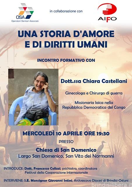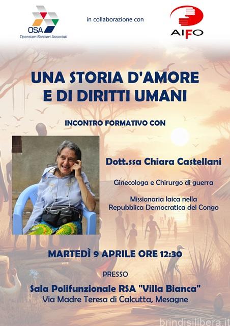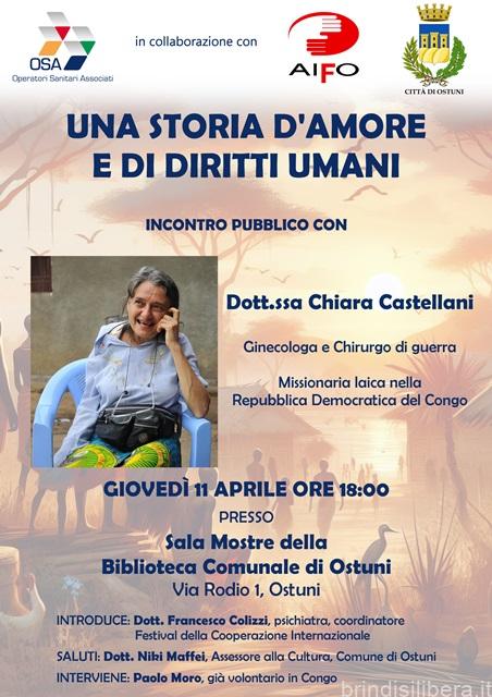 Chiara Castellani sarà ospite del gruppo AIFO di Ostuni dal 9 all’11 aprile e, in collaborazione con la cooperativa OSA (Operatori Sanitari Associati), sarà la protagonista di alcuni incontri con personale sanitario e sociosanitario, associazioni, istituzioni e cittadini.