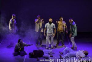 “Spettri” è lo studio, il confronto, la conoscenza e l’approfondimento di alcuni personaggi storici, iconici o semplicemente protagonisti di un evento che ha segnato la vita e i destini di tutti: Enzo Tortora, Madre Teresa di Calcutta, Frida Kahlo, Bernard Milk, Las Patronas, Peppino Impastato, Palmina Martinelli. Quest’ultima, in particolare, rappresenta un simbolo di resistenza nella memoria comune della terra di Brindisi, la giovane che ha sacrificato la propria vita nel rifiuto della sottomissione. Personaggi che hanno cambiato il mondo e hanno speso molte delle loro energie per cercare di trasformare, in meglio, l’umanità lasciando tracce di sé. “Spettri” è un ponte tra passato e presente, un invito alla riflessione sulla capacità dell’individuo di influenzare il corso della storia. Lo spettacolo si inserisce in un più ampio progetto di inclusione sociale e lavorativa promosso da AlphaZTL che mira a riavvicinare i detenuti alla società assicurando loro non solo un’opportunità di espressione artistica ma anche un regolare compenso per i giorni di spettacolo. L’intesa tra istituzioni diverse, come il teatro, la casa circondariale e il Comune, testimonia l’importanza di un approccio olistico alle politiche di reinserimento, a conferma di come l’arte possa diventare un veicolo di cambiamento offrendo spazi di dialogo e di crescita personale e condivisa. “Spettri” trasforma il palcoscenico in un laboratorio di emozioni autentiche, nel quale le esperienze dei detenuti diventano lezioni viventi per il pubblico mettendo al centro di tutto ideali universali di giustizia e umanità che trascendono i confini del teatro e del carcere stesso.