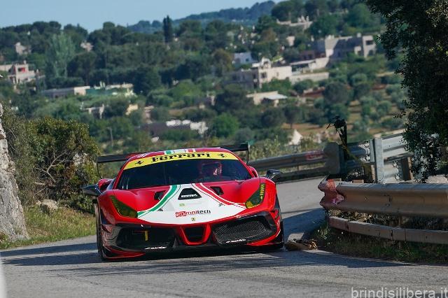 In categoria Racing Start il fasanese Oronzo Montanaro ha vinto in casa, segnando in entrambe le manche il miglior tempo su BMW Mini JCW, davanti a Salvatore Mondino (BMW Mini Cooper S). In RS Plus, la seconda salita non ha portato fortuna a un altro fasanese, il favorito Giacomo Liuzzi, che con la sua BMW Mini Cooper S ha perso la vittoria in casa cui puntava. È stata così l’altoatesina Selina Prantl (BMW Mini Challenge Evo) a confermarsi in stato di grazia, aggiudicandosi la gara davanti a Francesco Savoia (Peugeot 106 S16). Un’altra pilota locale, in questo caso Anna Maria Fumo di Martina Franca (Peugeot 308), ha vinto la classifica in Gruppo RS Cup, battendo Andrea Palazzo su BMW Mini JCW. Stupefacente la Volkswagen Golf Mk7 a motore Audi 5 cilindri sovralimentato di Giuseppe Aragona: il pilota calabrese ha battuto tutti in Gruppo E1, staccando di ben 16”7 Alessandro Tortora su Peugeot 106 Turbo. Bene anche il salernitano Salvatore Tortora in Gruppo TCR, vincitore con la sua Peugeot 308 Sport davanti a Luca Tosino (Audi RS3 LMS). Niente affatto scontata è stata la vittoria del foggiano Lucio Peruggini (Ferrari 488 Challenge Evo, sopra nella foto Rainieri) sul suo più forte avversario, il romano Marco Iacoangeli (BMW Z4), battuto di soli 2”76. Strada spianata, invece, per la AR1-Furore 4C a motore Zytek 3 litri, che il teramano Marco Gramenzi ha portato alla vittoria in Gruppo E2SH davanti a Amedeo Pancotti (BMW M539).