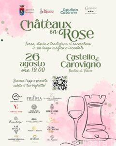 Vini pregiati, degustazioni e storia saranno i protagonisti della prima edizione di “Chateaux en Rose”, nel Castello di Carovigno.