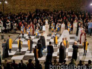 Cittadini e visitatori potranno assistere gratuitamente a giochi medievali – c’è grande attesa per il tiro con l’arco nel fossato del Castello – mentre intorno tutto attesterà un salto indietro di secoli, tra accampamenti, macchine da guerra, giullari e incantatori di serpenti, e ancora balli e falconieri. L’insieme sarà la degna scenografia in cui muoverà il corteo di figuranti per le vie del centro storico, passando dalla Villa comunale, a partire dalle ore 18 di sabato, e per l’attesa scacchiera vivente in piazza Orsini del Balzo in programma, sempre nella giornata di sabato dalle ore