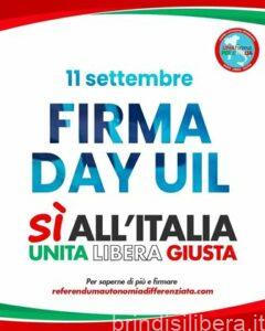 Non si ferma la raccolta firme per chiedere il referendum contro l’Autonomia differenziata. Mercoledì 11 settembre si terrà il “Firma Day UIL”: una giornata di mobilitazione in cui saranno allestiti gazebo nelle principali piazze d’Italia e nei luoghi di lavoro e socialità, per continuare a raccogliere le sottoscrizioni. A Lecce il Coordinamento territoriale UIL LECCE allestirà un banchetto nei pressi del Sedile di piazza Sant’Oronzo, dalle ore 18 alle 20.