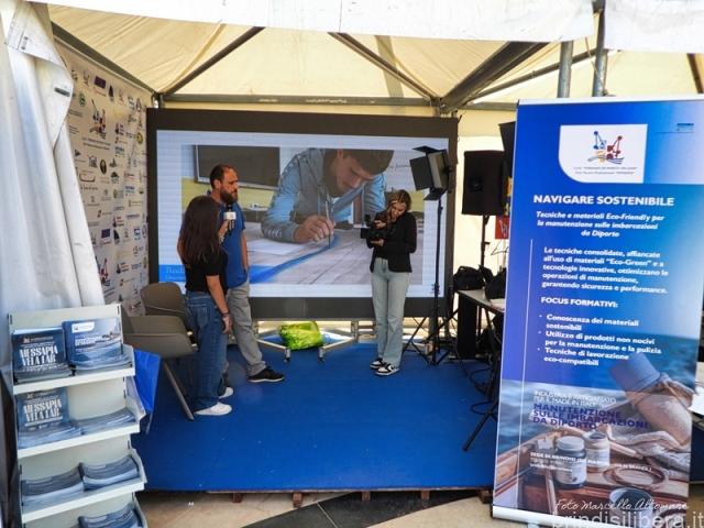 Un altro stand ospita un laboratorio di veleria e tappezzeria e un laboratorio nautico dove si utilizzano in pratica materiali e tecniche eco green. I visitatori possono vedere dal vivo le abilità tecniche degli studenti all’opera. Tra tessuti pregiati e vele su misura, un’occasione unica per immergersi nel cuore della nautica e scoprire il talento che nasce tra i banchi della scuola.