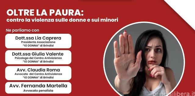 INTERVERRANNO: LA DOTT.SSA LIA CAPRERA (PRESIDENTE ASSOCIAZIONE “IO DONNA” DI BRINDISI); LA DOTT.SSA GIULIA VALENTE (PSICOLOGA DEL CENTRO ANTIVIOLENZA “IO DONNA” DI BRINDISI) L’AVV. CLAUDIA ROMA (AVVOCATO DEL CENTRO ANTIVIOLENZA “IO DONNA” DI BRINDISI) E L’AVV. FERNANDA MARTELLA, AVVOCATO PENALISTA.